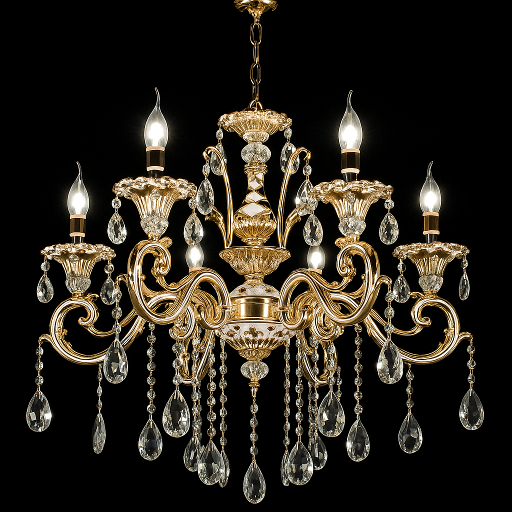 Rafinament, gusturi elevate, ingeniozitate – sunt doar cateva dintre atributele celor care iau in considerare candelabrul atunci cand cauta corpul de iluminat potrivit. Din Evul Mediu si pana in prezent, candelabrele au oferit o eleganta aparte locuintelor, astfel ca unii artisti le-au transformat chiar in opere de arta. Alege un candelabru si creeaza-ti propriul spatiu artistic! Dintre toate variantele de corpuri de iluminat existente, cele cu cristale reprezinta cel mai bine stilul glamour. Regasite in candelabre sau lustre moderne, cristalele creeaza efecte vizuale fermecatoare, pastrand in acelasi timp note decorative fine, elegante, chiar clasice. Confera eleganta incaperii tale prin acest candelabru deosebit. Sursele de lumina sunt inconjurate de fire ornamentate cu un numar impresionant de cristale. Odata ce candelabrul este aprins, reflexia luminii prin cristalele atent pozitionate creeaza o sursa de lumina unica, extraordinara din punct de vedere estetic. Cristalele K9 sunt cunoscute pentru proprietatile lor fizice exceptionale, printre care se enumera claritatea deosebita cat si rezistenta materialului.