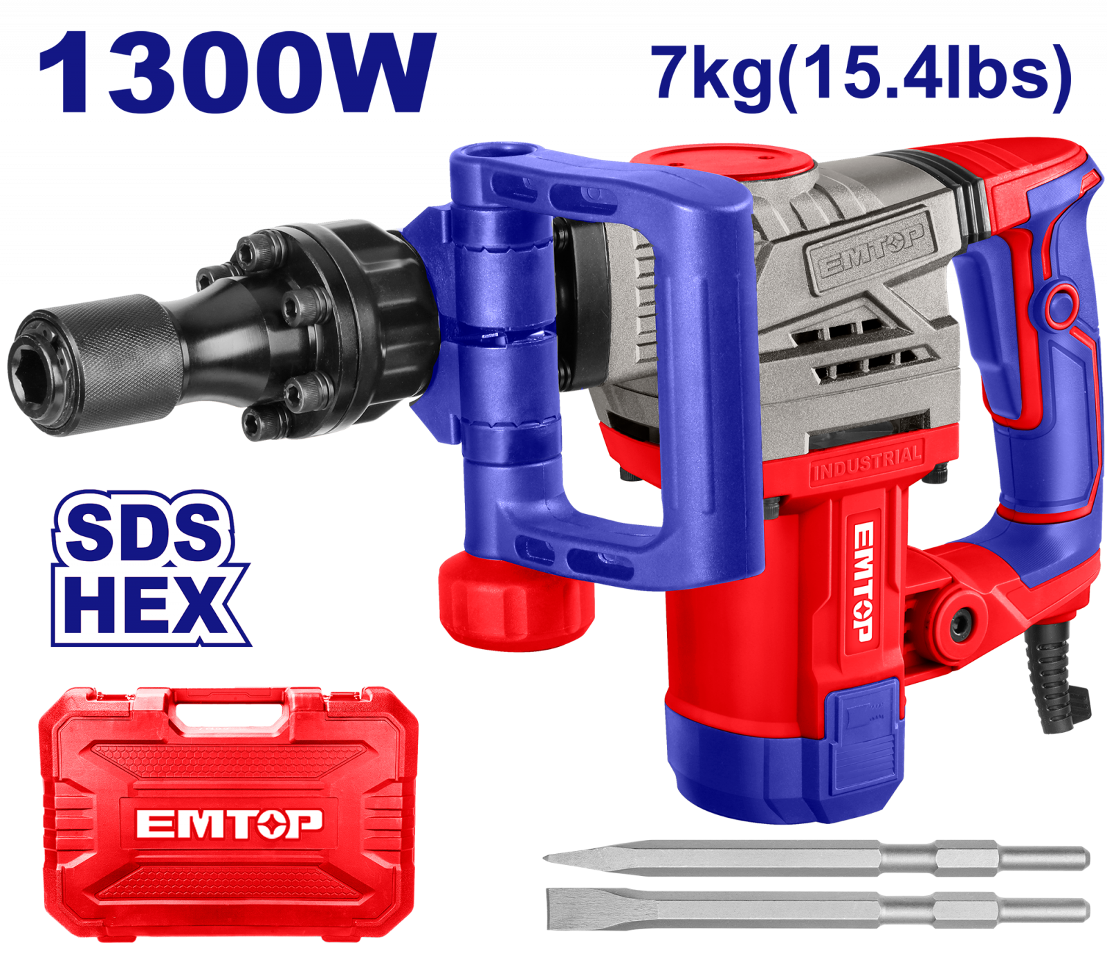 Ciocan demolator HEX, 1300W, 20J, 2 dalti, 7kg, ambalat in cutie de transport – EDBRH1301, EMTOP