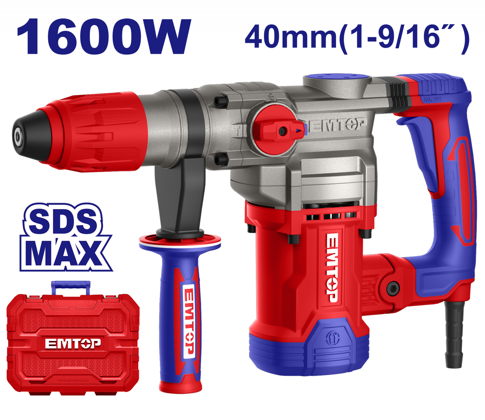 Ciocan electric rotopercutor 1600W, 10.0J, cutie de transport – ERHRM1608, EMTOP
