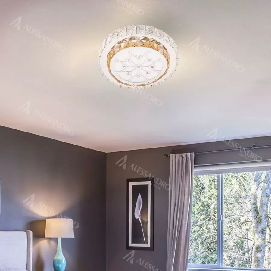 Lustra LED Abatia, expusa in showroom-ul Alessandro Design din Voluntari, este o combinatie rafinata de stil si functionalitate. Cu o putere de 24W si un design captivant, aceasta lustra reprezinta alegerea perfecta pentru cei care doresc sa adauge un strop de eleganta si lumina in orice spatiu. Designul lustra Abatia se remarca prin cadrul sau argintiu, imbogatit cu cristale transparente si aurii, care adauga un nivel de rafinament si stralucire. Cristalele nu doar ca imbunatatesc aspectul estetic al lustrei, dar si refracta lumina intr-un mod spectaculos, creand un joc de scanteieri si straluciri sofisticate. Unul dintre cele mai importante aspecte ale lustrei Abatia este flexibilitatea oferita de telecomanda inclusa. Cu aceasta, puteti alege intre trei tipuri de lumina – calda, rece si neutra – permitandu-va sa schimbati ambianta camerei in functie de momentul zilei sau de preferintele personale. Aceasta caracteristica face din lustra Abatia o solutie de iluminat extrem de versatila. Cu un diametru de 30 cm si un flux luminos de 3840lm, lustra LED Abatia ofera o iluminare puternica si eficienta, fiind ideala pentru a lumina spatii de dimensiuni medii. Tehnologia LED integrata asigura o eficienta energetica ridicata si o durata de viata indelungata, ceea ce o face o optiune economica si sustenabila. Lustra LED Abatia este o alegere excelenta pentru cei care cauta un echilibru intre estetica, functionalitate si eficienta energetica. Este solutia ideala pentru a adauga un element de iluminat elegant si modern in orice ambient, oferind un iluminat de calitate superioara care sa imbunatateasca aspectul si atmosfera oricarui interior.