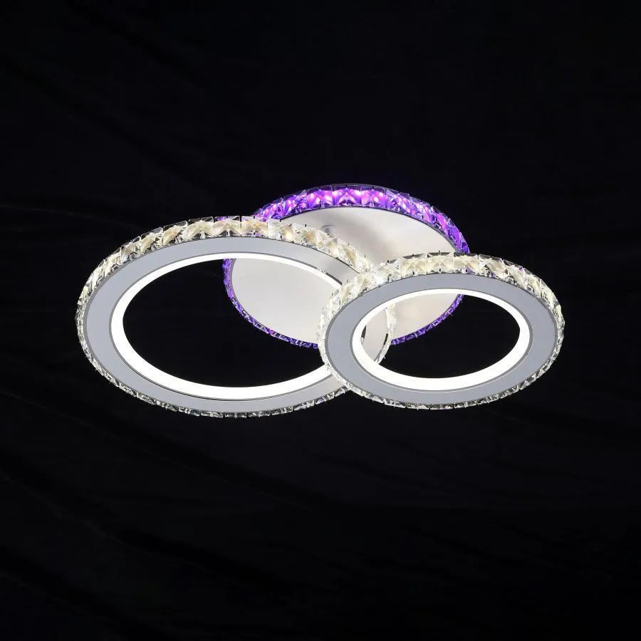 Lustra LED cu telecomanda si cristal NOVA ROTONDA RGB 43W, 2 Cercuri, lumina Rece/Calda/Neutra, Dimabila, Alb