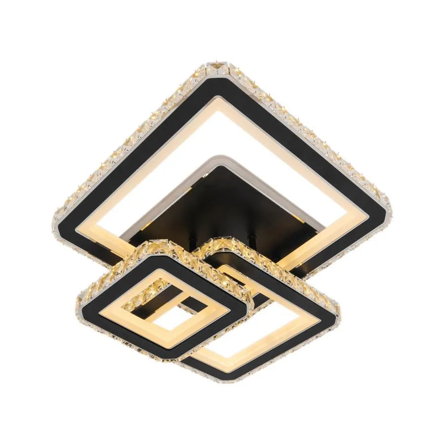 Lustra LED cu telecomanda si cristal LEILA 154W, 3 Patrate, lumina Rece/Calda/Neutra, Dimabila, Negru Crom Lucios