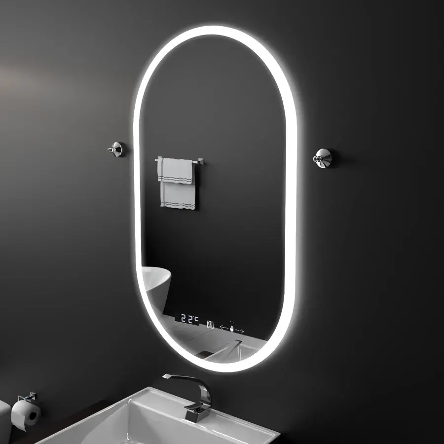 In loc sa apese un buton, utilizatorii pot pur si simplu sa faca o miscare in fata oglinzii pentru a activa sau a dezactiva iluminarea, sau pentru a schimba intre diferitele temperaturi de culoare ale luminii, de la calda la rece sau neutra. Cu o simpla atingere, utilizatorii pot activa un sistem incorporat care incalzeste suprafata oglinzii, prevenind formarea aburului. Acest proces nu numai ca asigura claritatea constanta a oglinzii, dar si mentine un aspect elegant si curat al acesteia, fara a afecta functionalitatea sau estetica sa moderna. Prin alternarea afisajului intre ora actuala si temperatura ambientala la fiecare doua secunde, ceasul ofera o dubla functionalitate esentiala in viata de zi cu zi. Aceasta caracteristica este deosebit de utila in bai sau alte spatii unde este important sa ramai la curent cu timpul si sa monitorizezi conditiile de mediu. Oglinda LED ofera utilizatorilor posibilitatea de a ajusta lumina in functie de preferintele si nevoile lor, prin selectarea uneia dintre cele trei optiuni de iluminare disponibile: lumina calda, lumina rece sau lumina neutra. Capacul din PVC actioneaza ca un scut protector, prevenind intrarea apei sau a particulelor de praf in mecanismele delicate precum banda LED si sistemul de dezaburire. Fara riscul deteriorarii cauzate de umiditate sau acumularea de praf, componentele interne ale oglinzii pot functiona la parametrii optimi pentru o perioada indelungata.