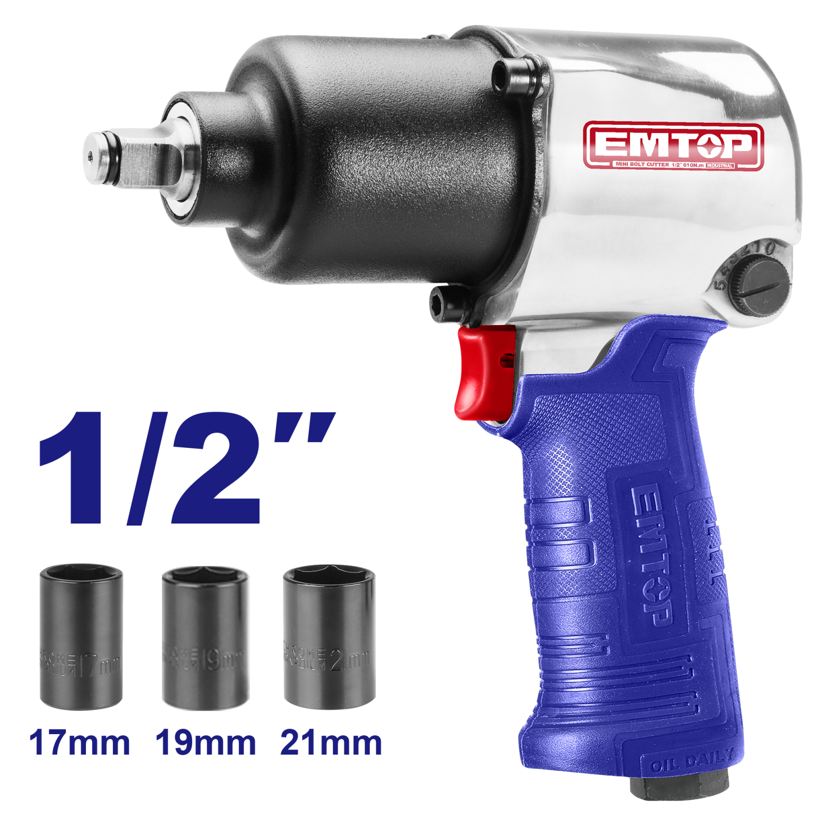 Pistol pneumatic 1/2″, 610Nm, 3 capete (17mm,19mm,21mm) – EATL126801 EMTOP – EATL126801, EMTOP