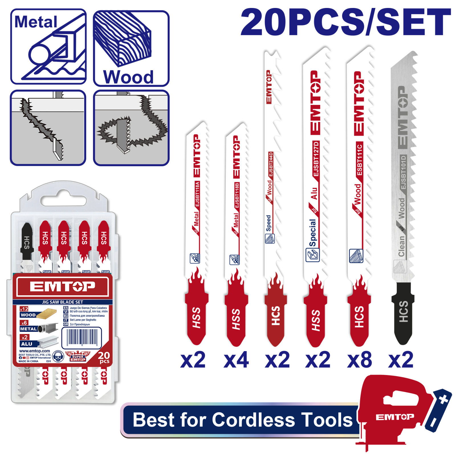 Set de lame pentru fierastrau, 20 buc – EJSBT2001, EMTOP